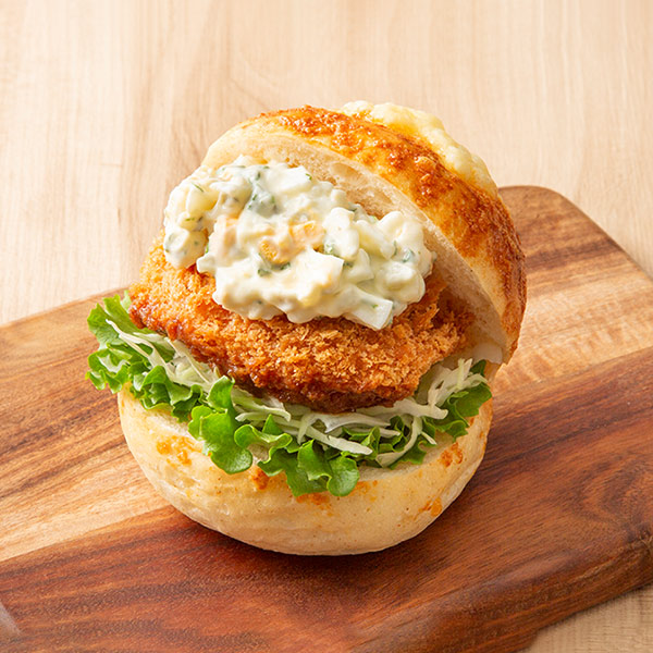 プリプリ食感の厚みのある海老カツと具沢山のタルタルソースをたっぷりとサンドしました。